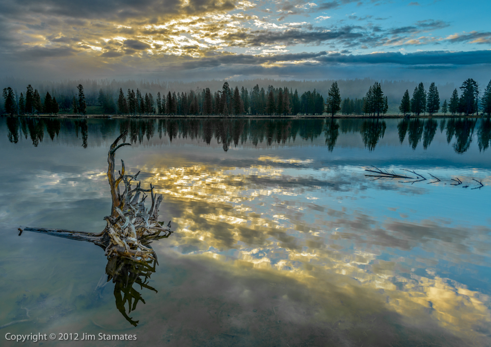 Tweaked in Lightroom 4 this image from the Yellowstone Workshop is special to me. Very early morning, the fog, the reflection, the sounds of birds and 6 busy photographers interpreting their vision in digital photography. No 2 images exactly alike as we stood just feet from each other on the bank.